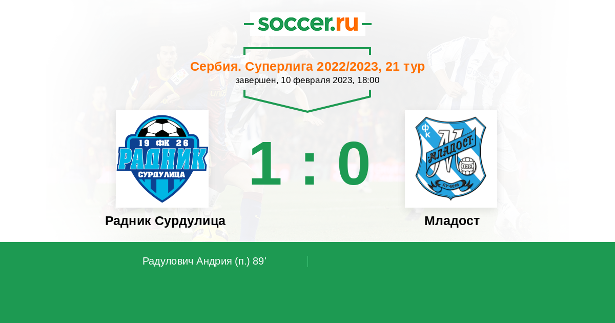 Протокол матча Радник Сурдулица против Младост
