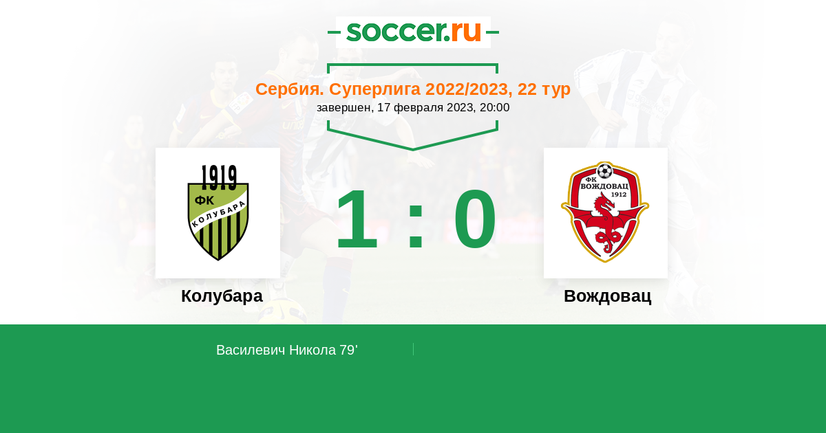 Протокол матча Колубара против Вождовац