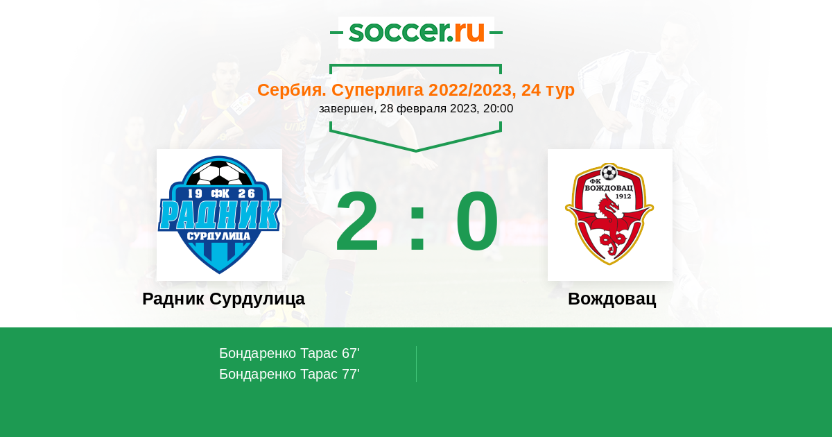 77' (2:0) Бондаренко Тарас (8)
