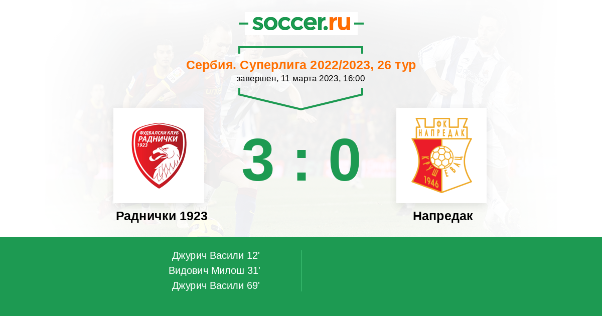 31' (2:0) Видович Милош (25) (Милунович Лука (40))