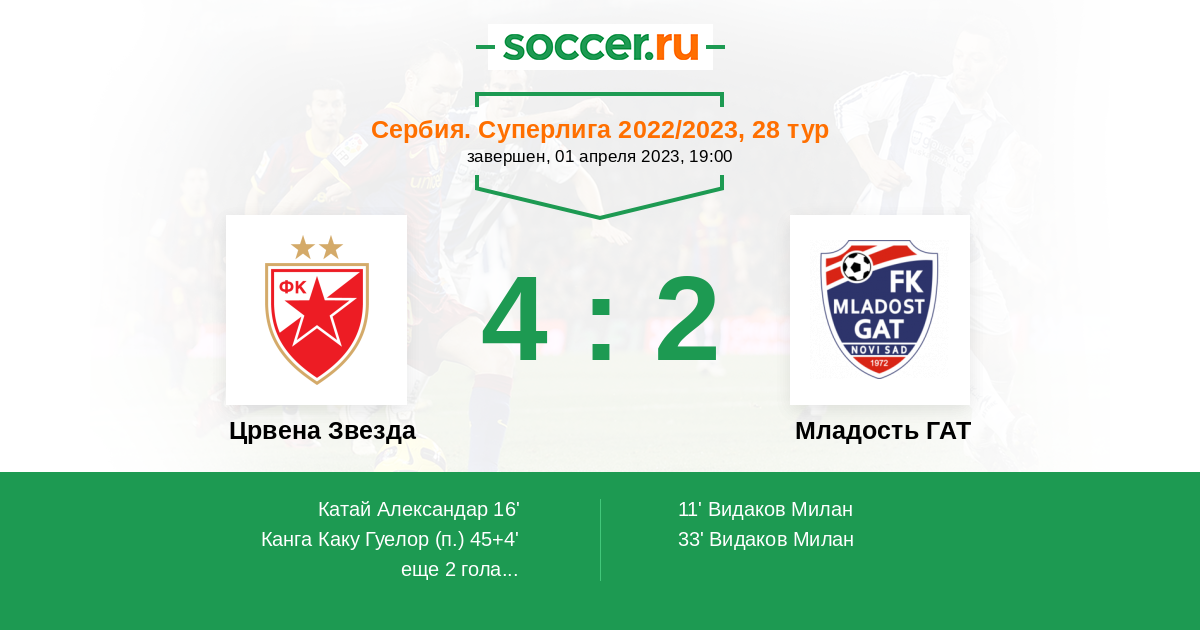 Протокол матча Црвена Звезда против Младость ГАТ