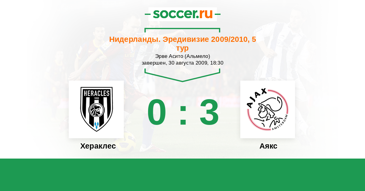 Нидерланды. Эредивизи 18.04.2010 Аякс Логотип футбольный клуб Аякс (Амстердам) 4:0 Логотип футбольный клуб Хераклес (Алмело) Хераклес