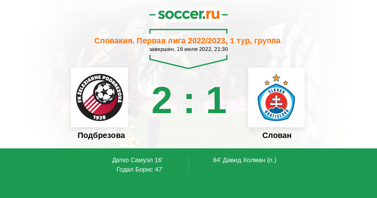 Протокол матча Подбрезова против Слован
