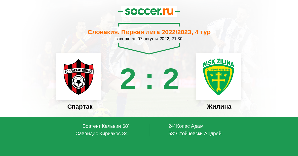 68' (1:2) Боатенг Кельвин (14) (Штефаник Самуэль (8))