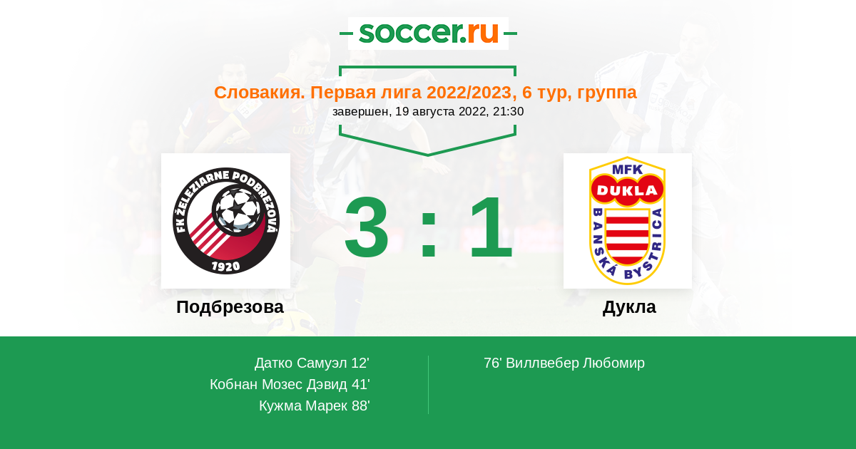 Протокол матча Подбрезова против Дукла