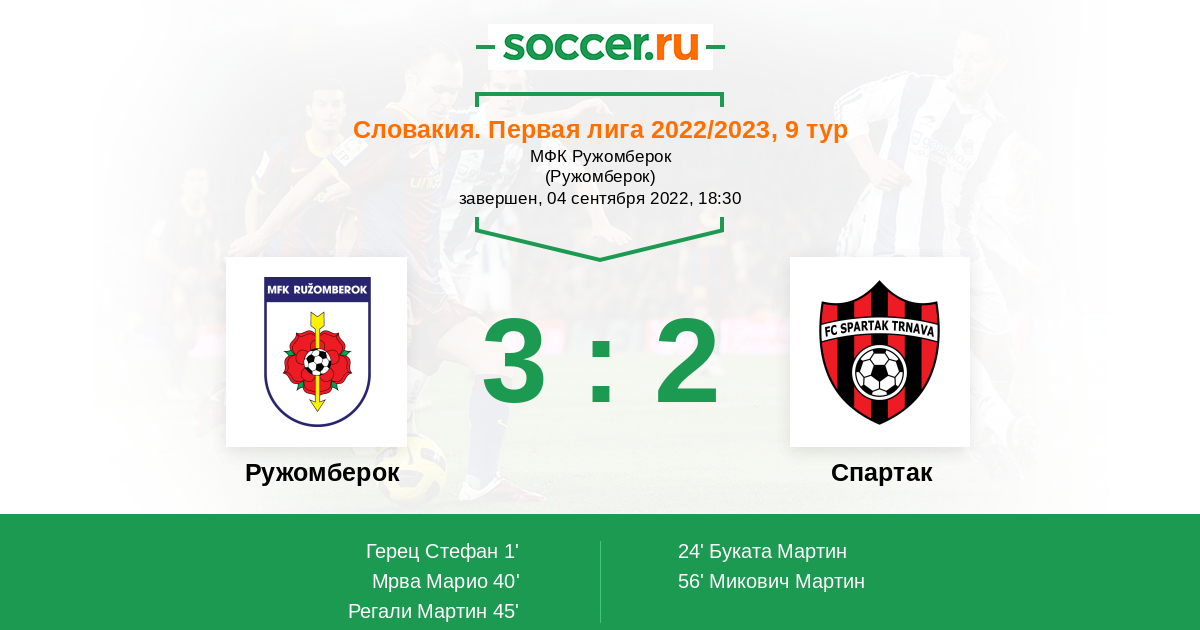 Протокол матча Ружомберок против Спартак