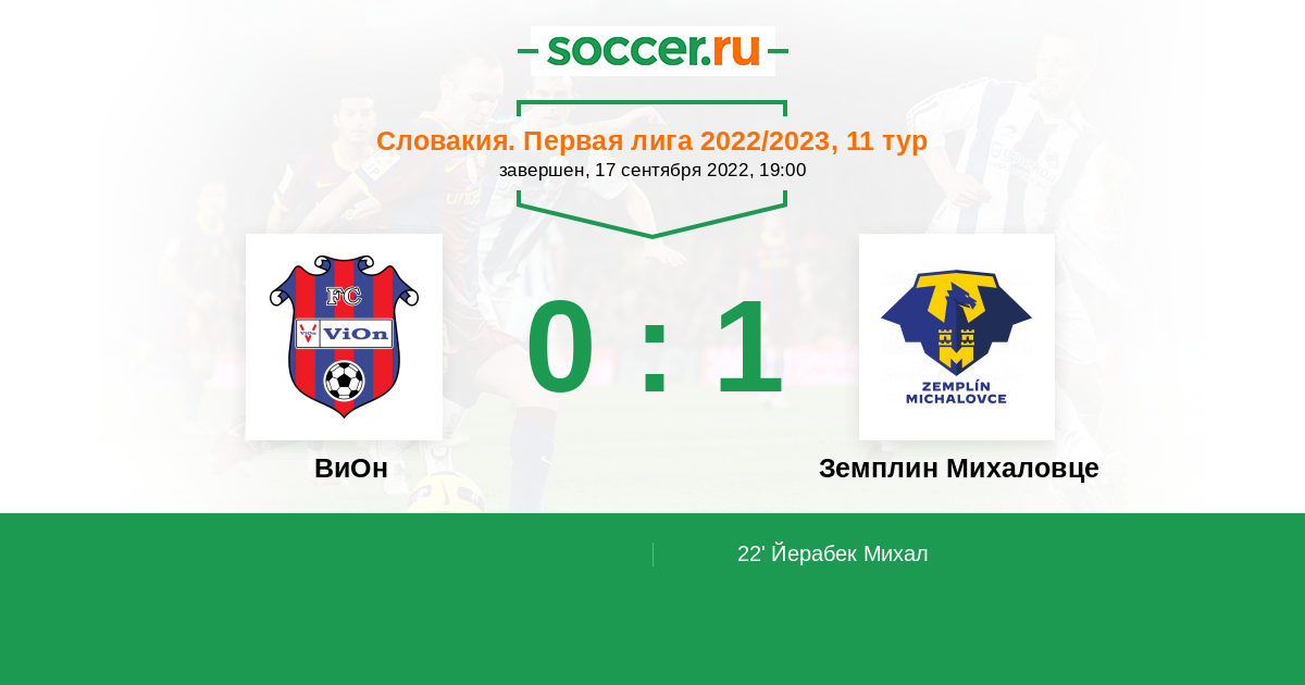 Протокол матча ВиОн против Земплин Михаловце