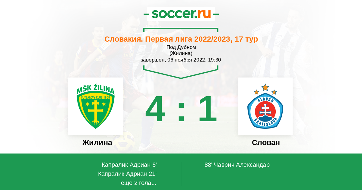 21' (2:0) Капралик Адриан (10) (Руснак Матуш (66))