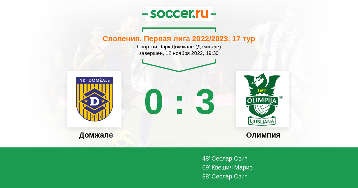 Протокол матча Домжале против Олимпия