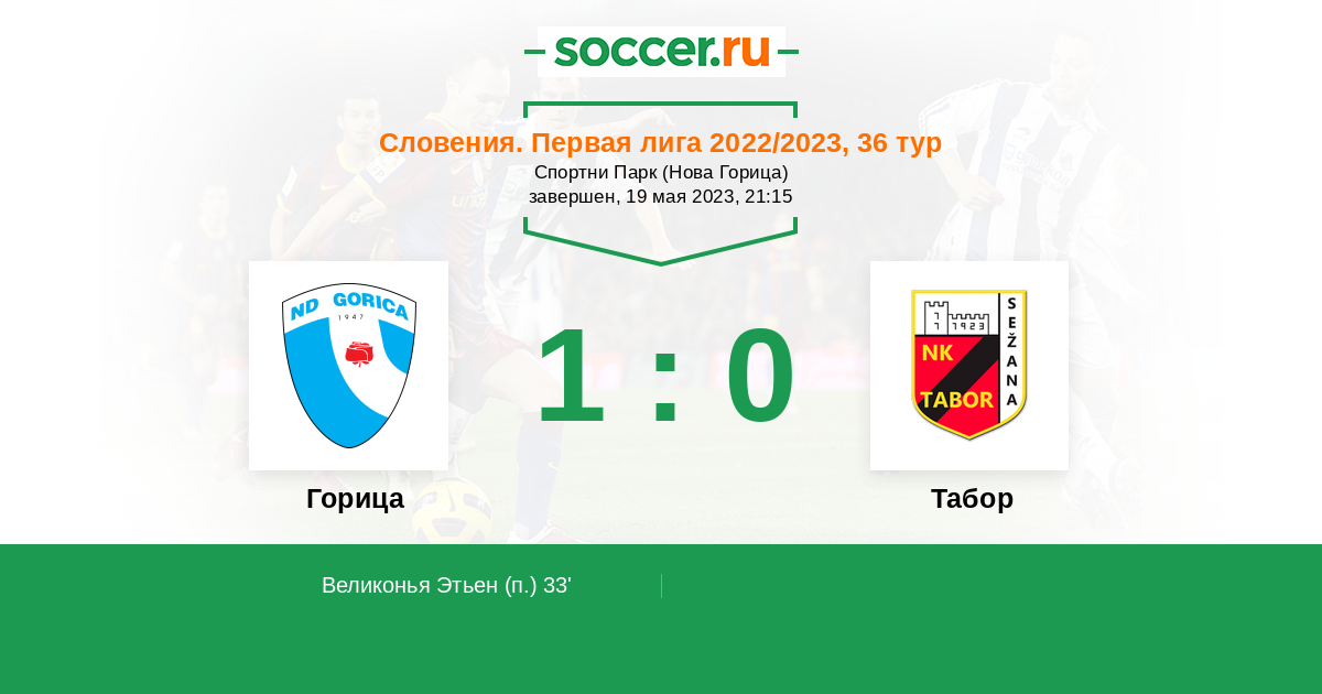 Протокол матча Горица против Табор