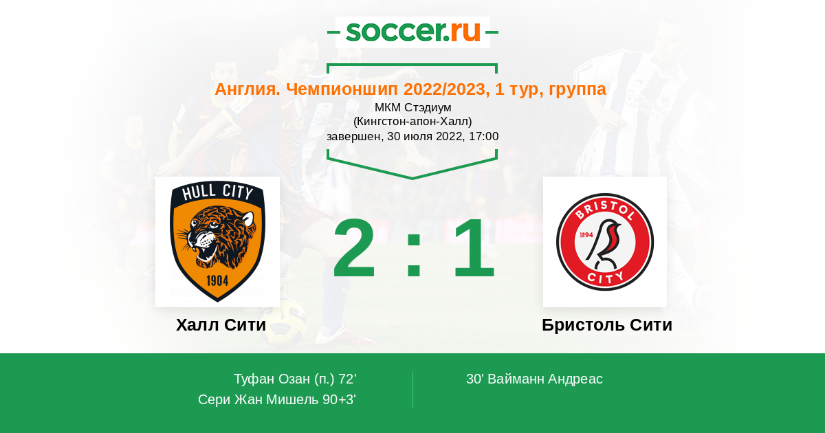 Протокол матча Халл Сити против Бристоль Сити