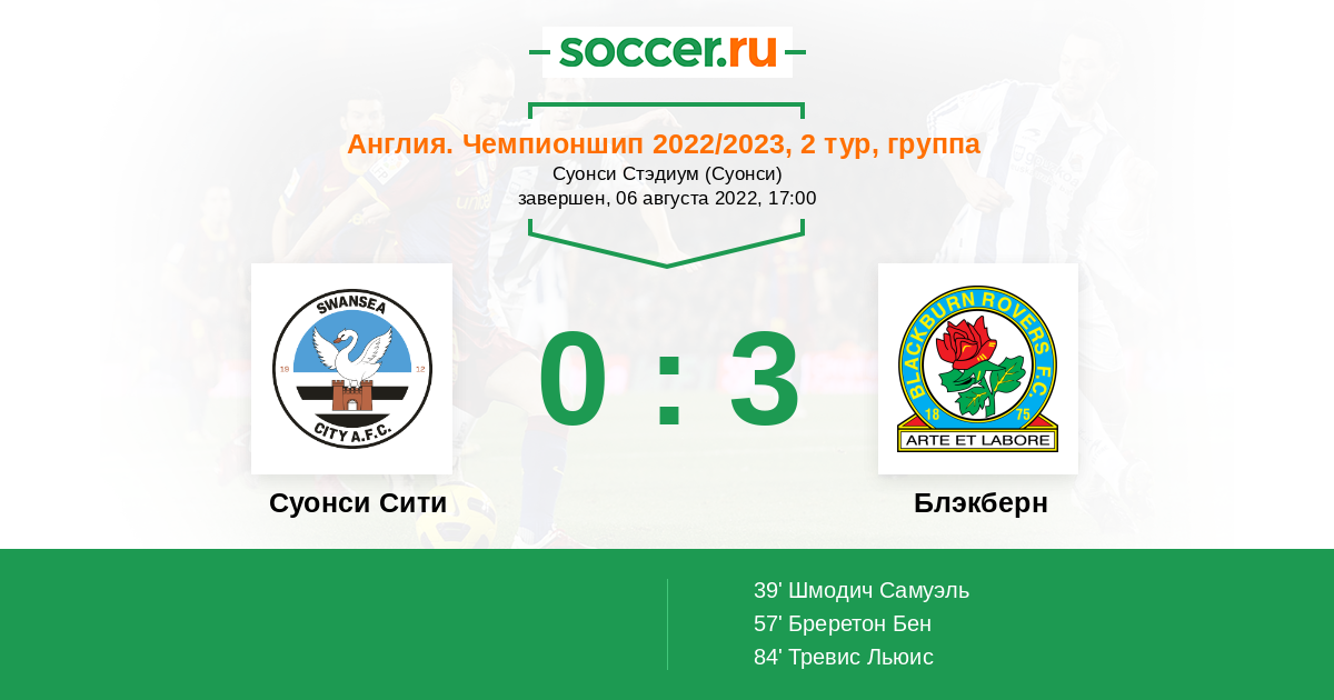Протокол матча Суонси Сити против Блэкберн