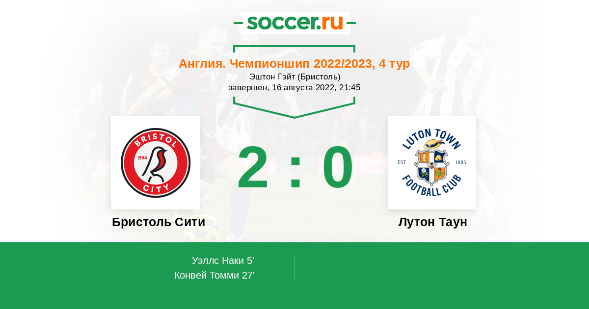 Протокол матча Бристоль Сити против Лутон Таун