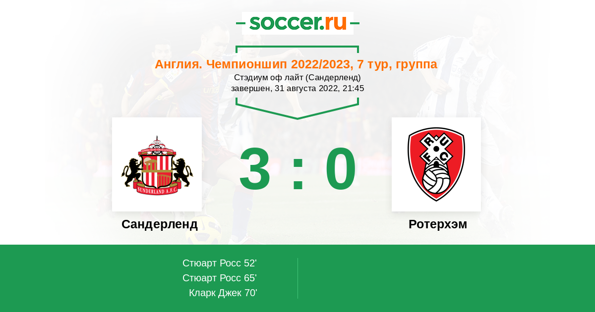 Протокол матча Сандерленд против Ротерхэм