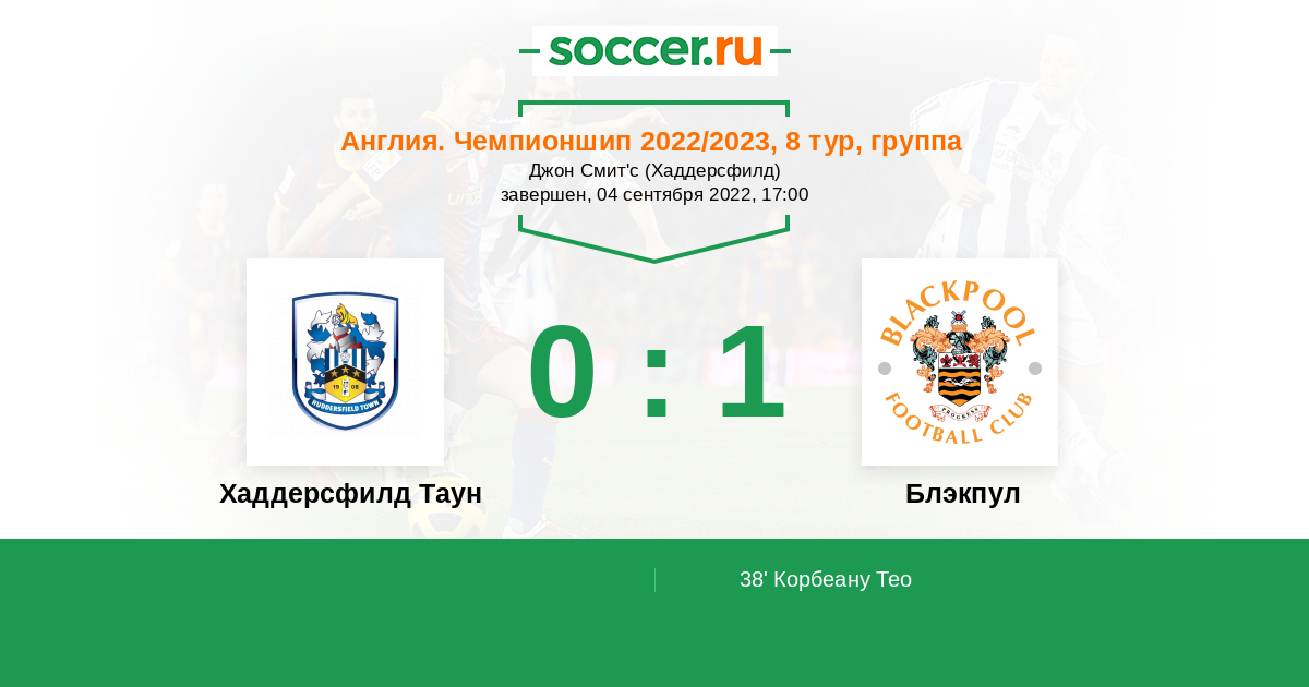 Протокол матча Хаддерсфилд Таун против Блэкпул