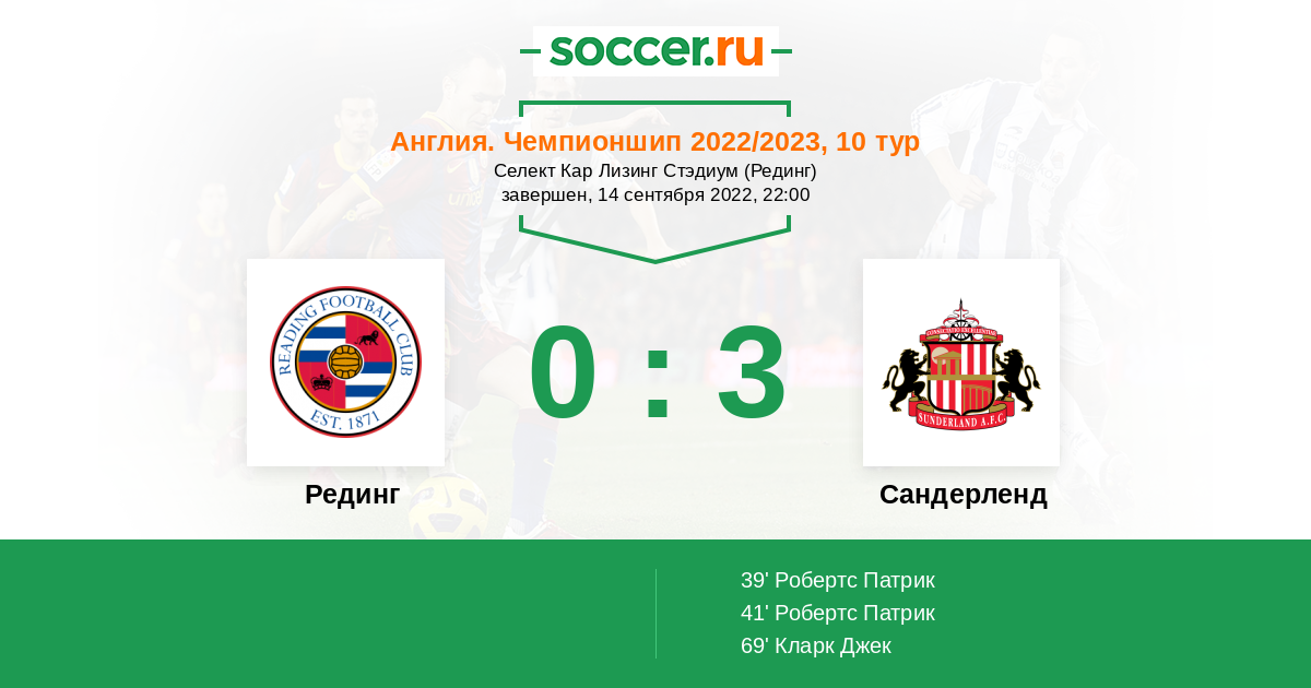 Рединг в этом чемпионате на своем поле обыграл всех соперников: 4 раза из 4-х. Почему бы им не продолжить серию, учитывая, что Сандерленд не выглядит непроходимым соперником. Трудовая победа Рединга.