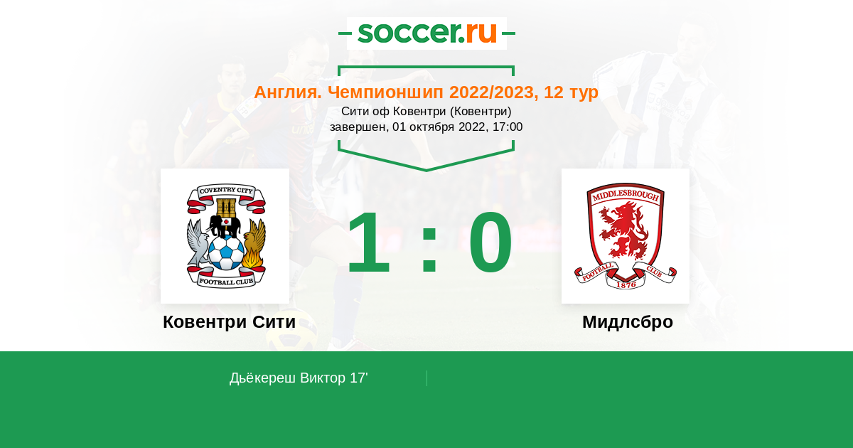 Протокол матча Ковентри Сити против Мидлсбро
