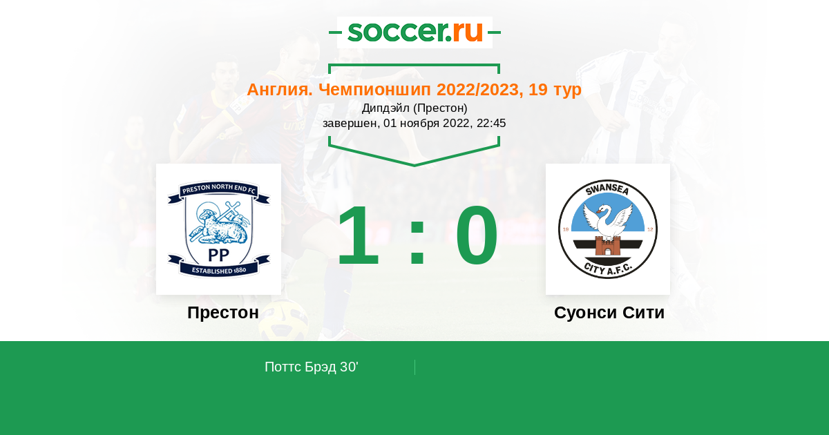 Протокол матча Престон против Суонси Сити