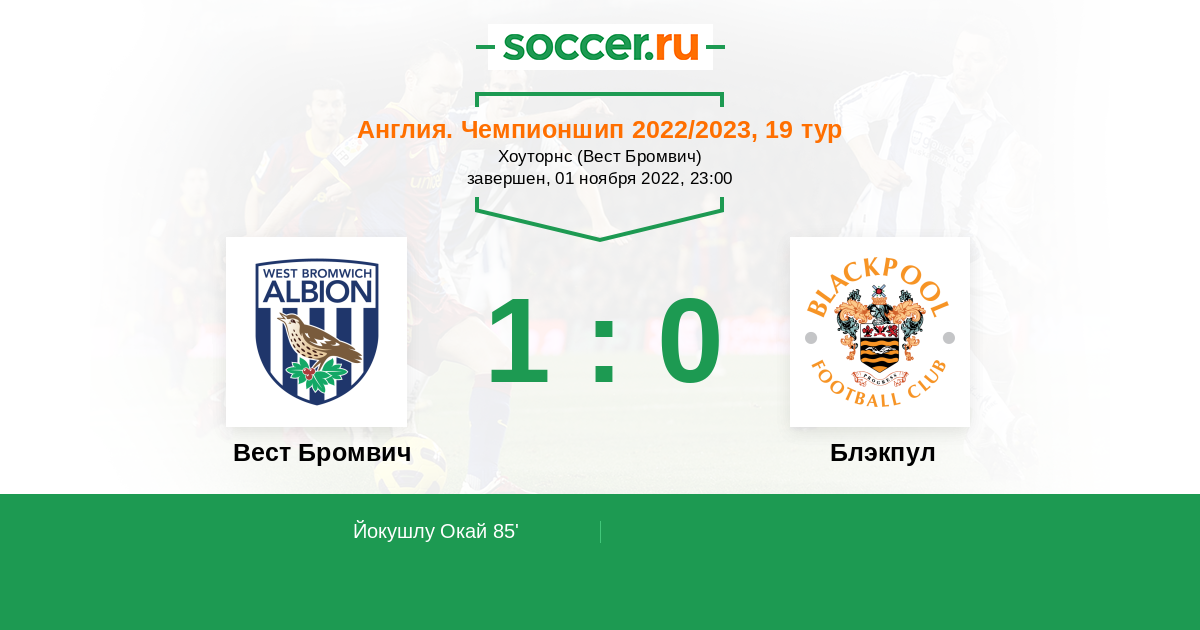 Протокол матча Вест Бромвич против Блэкпул