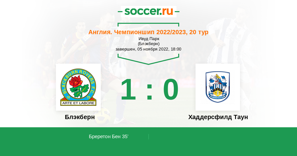 Протокол матча Блэкберн против Хаддерсфилд Таун