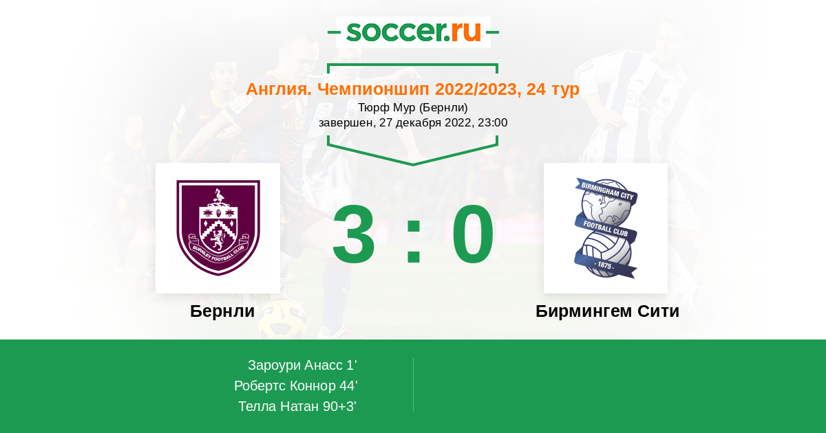 Протокол матча Бернли против Бирмингем Сити