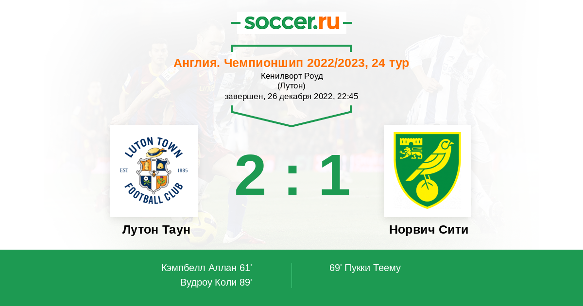 69' (1:1) Пукки Теему (22) (Гибсон Бен (6))