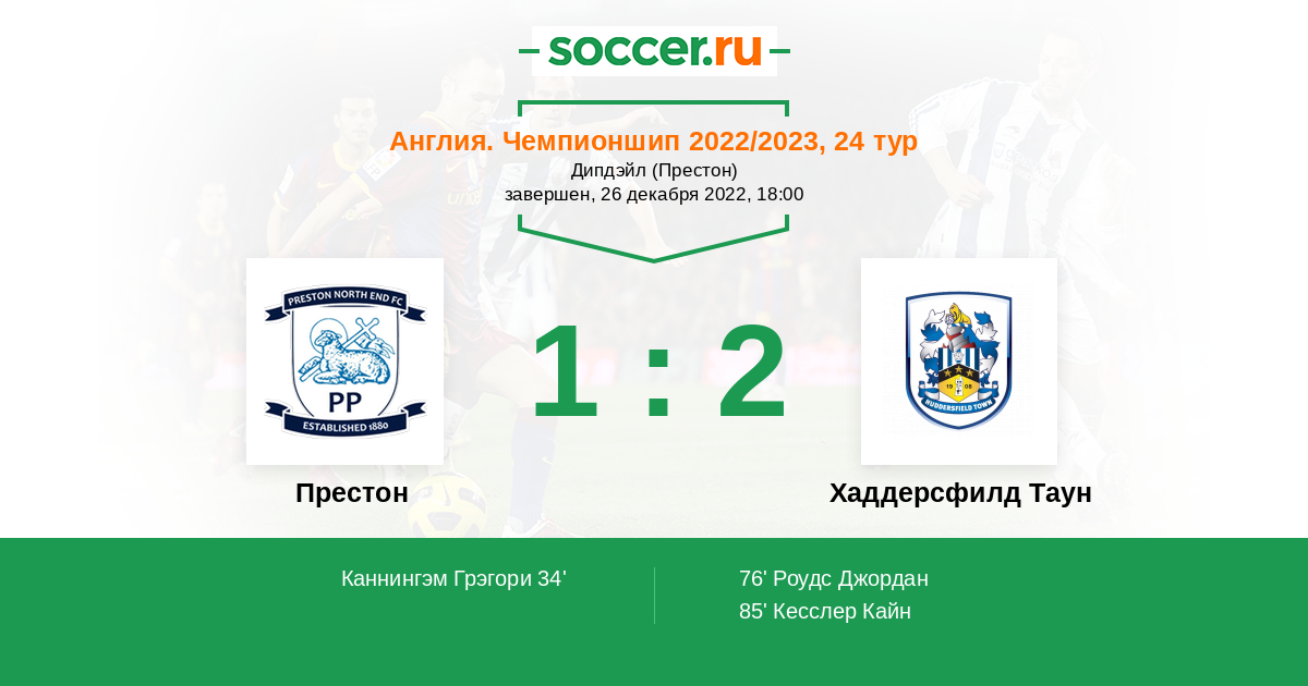 Протокол матча Престон против Хаддерсфилд Таун