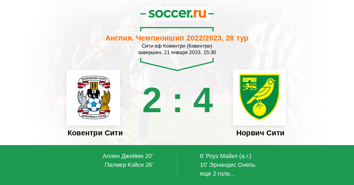 Протокол матча Ковентри Сити против Норвич Сити