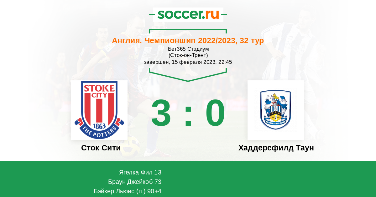 Протокол матча Сток Сити против Хаддерсфилд Таун