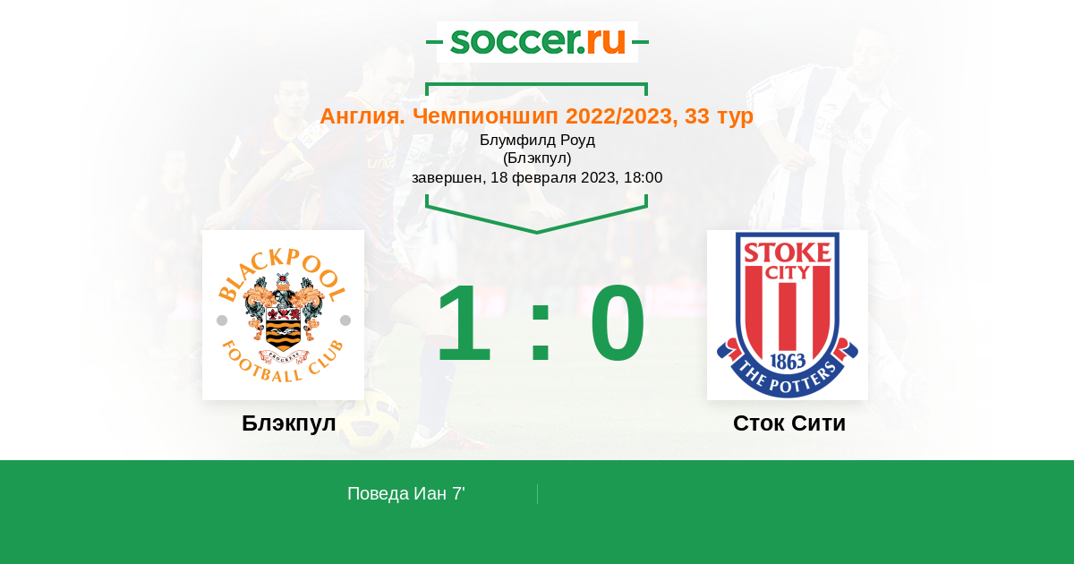 Протокол матча Блэкпул против Сток Сити