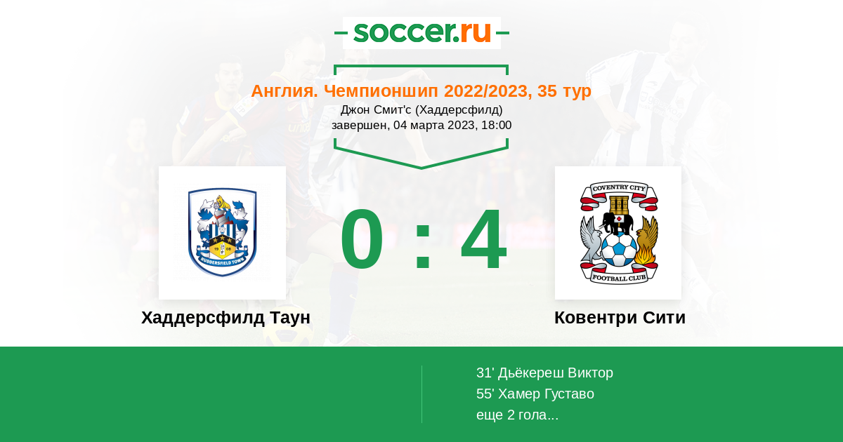 Протокол матча Хаддерсфилд Таун против Ковентри Сити