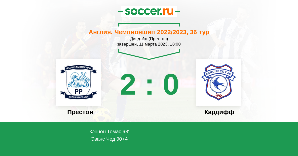 Протокол матча Престон против Кардифф