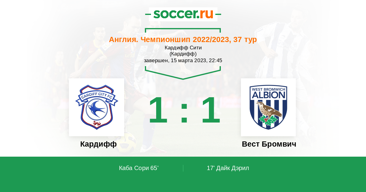 Протокол матча Кардифф против Вест Бромвич