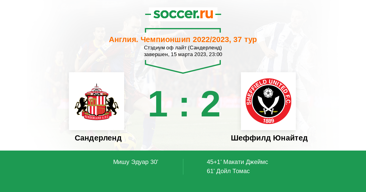Протокол матча Сандерленд против Шеффилд Юнайтед