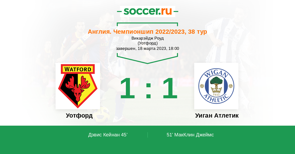 Протокол матча Уотфорд против Уиган Атлетик