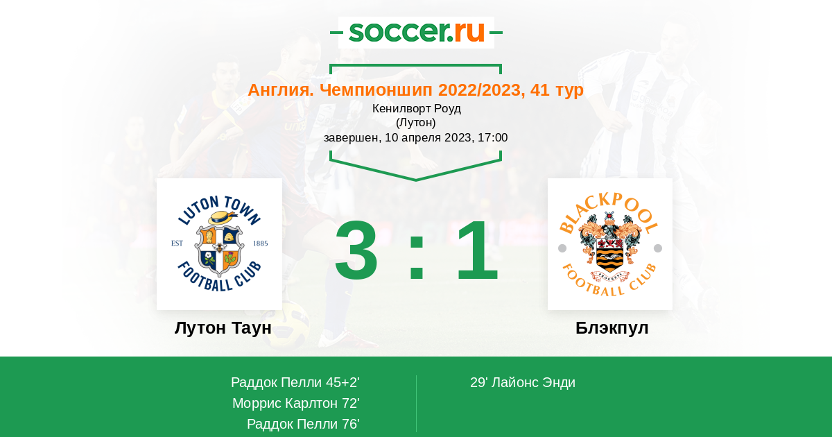 Протокол матча Лутон Таун против Блэкпул