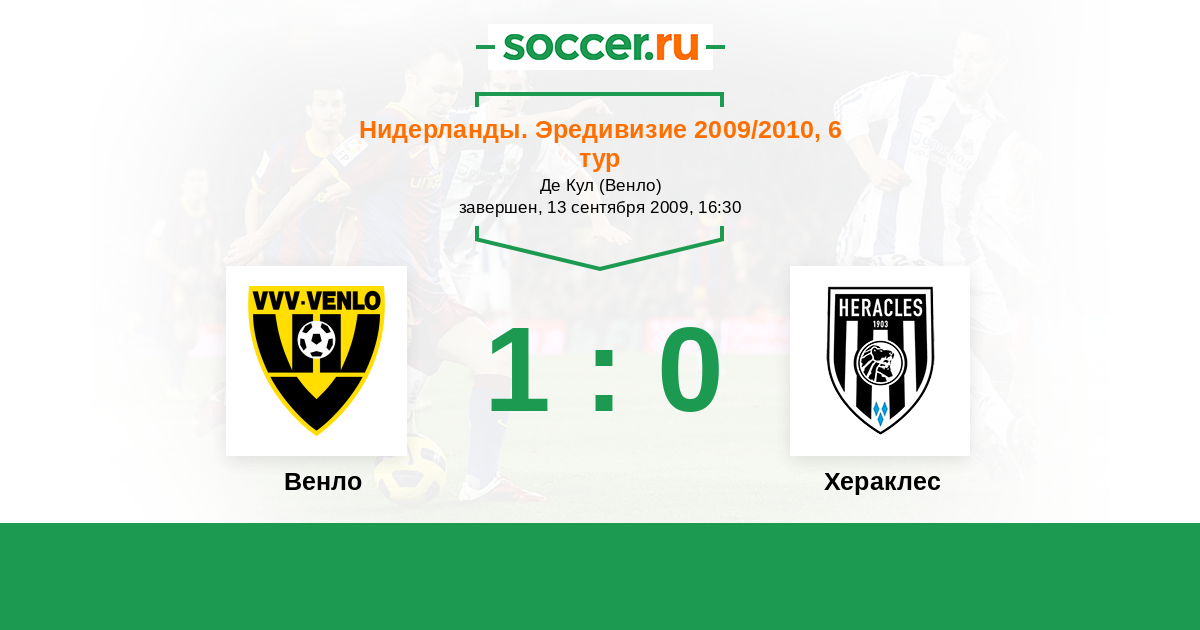 Нидерланды. Эредивизи 18.12.2009 Хераклес Логотип футбольный клуб Хераклес (Алмело) 1:0 Логотип футбольный клуб Венло Венло