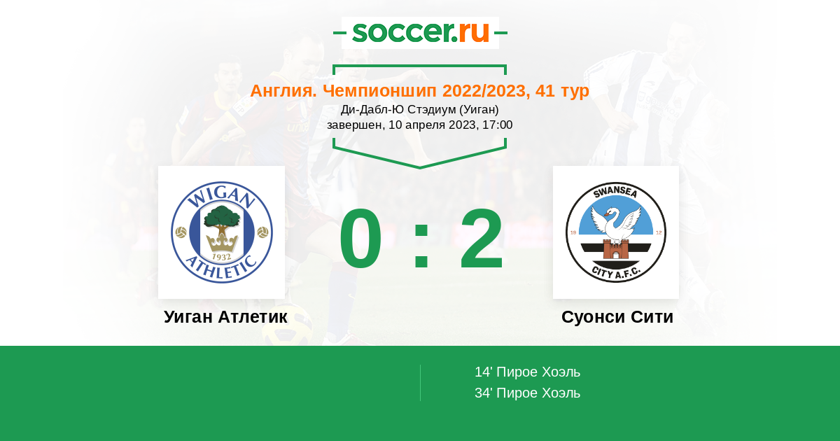 Протокол матча Уиган Атлетик против Суонси Сити