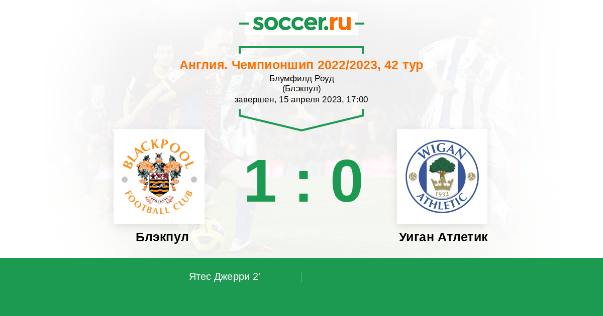 Протокол матча Блэкпул против Уиган Атлетик