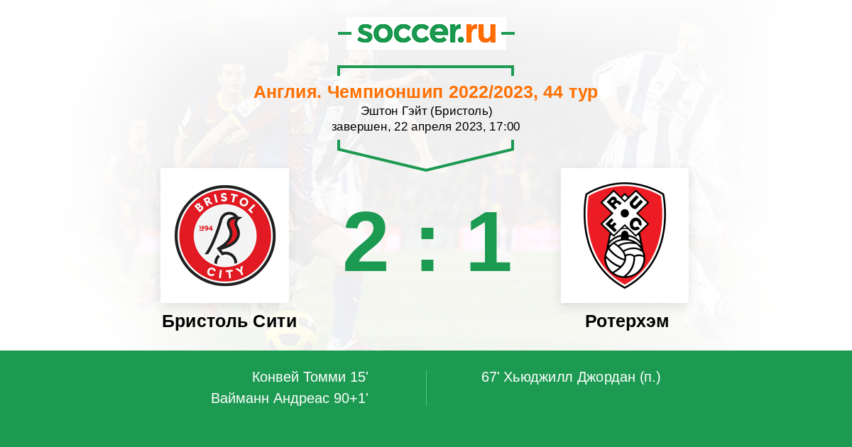 Протокол матча Бристоль Сити против Ротерхэм
