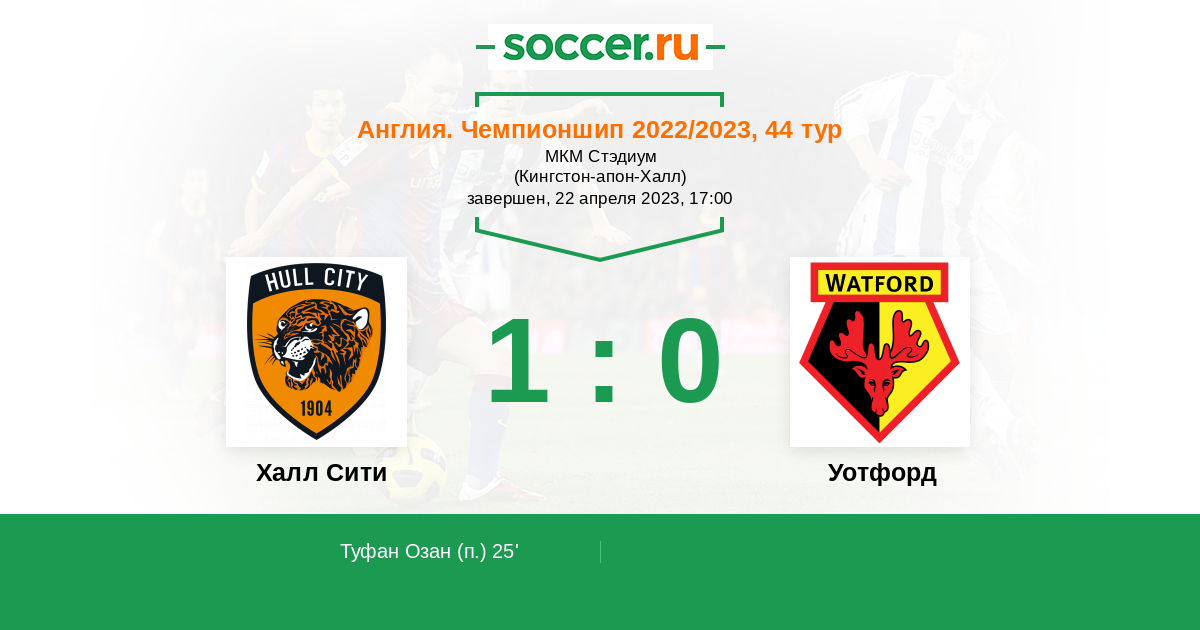 Протокол матча Халл Сити против Уотфорд