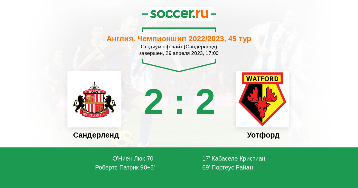 Протокол матча Сандерленд против Уотфорд