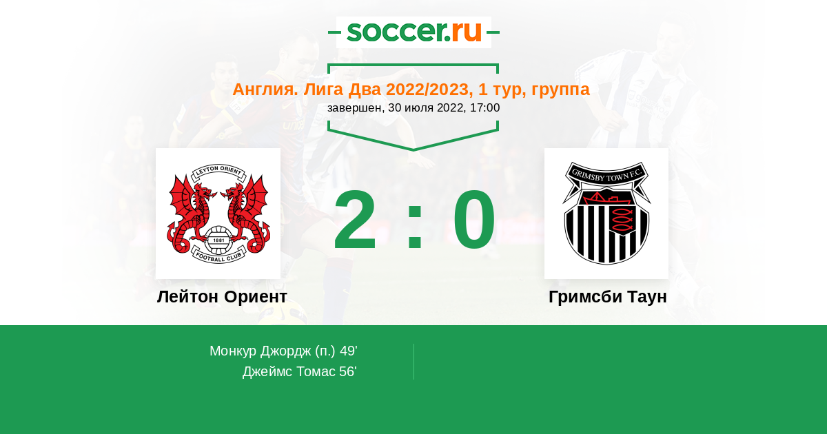 Протокол матча Лейтон Ориент против Гримсби Таун
