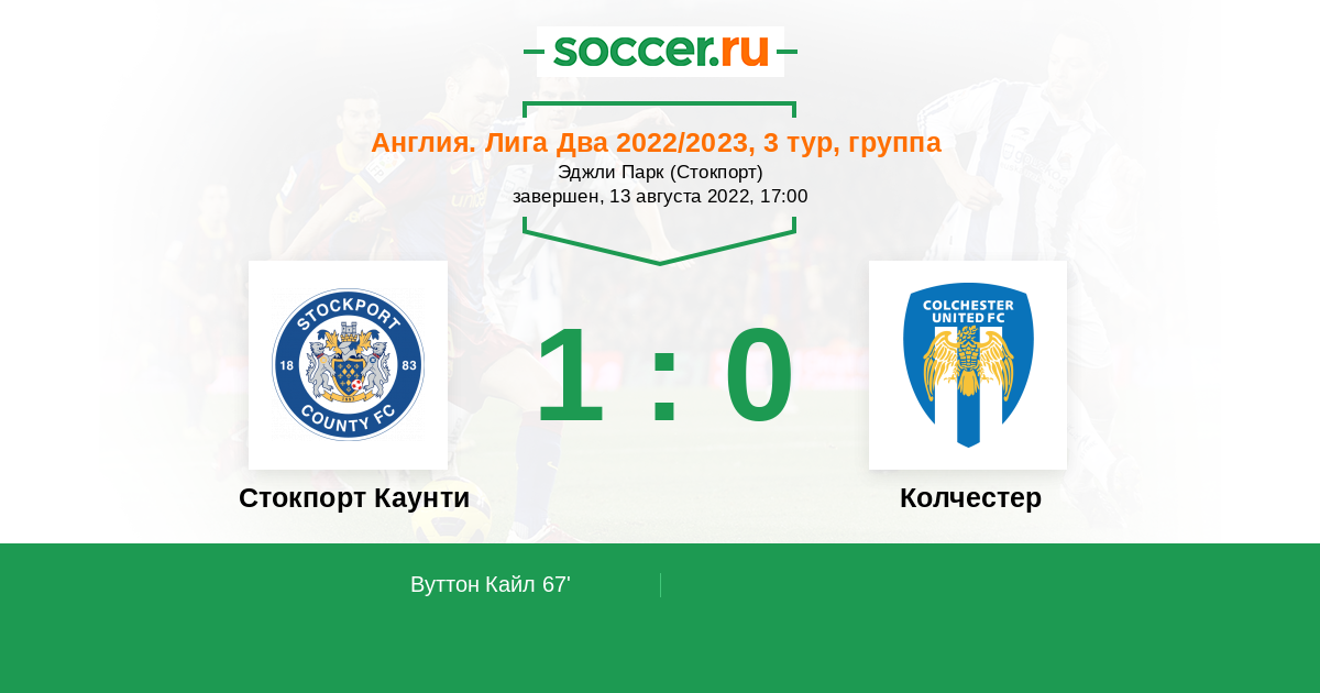 Протокол матча Стокпорт Каунти против Колчестер
