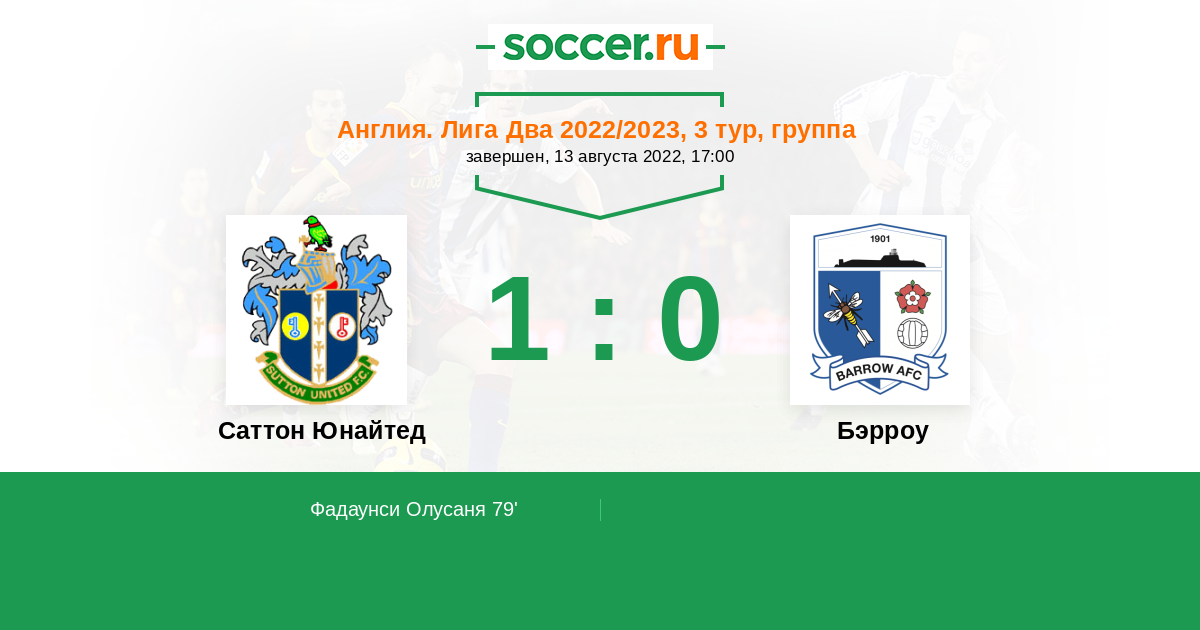 Протокол матча Саттон Юнайтед против Бэрроу
