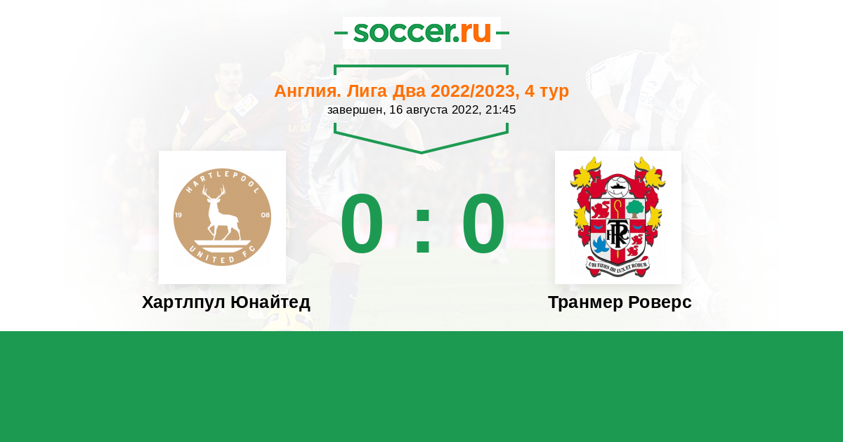 Протокол матча Хартлпул Юнайтед против Транмер Роверс