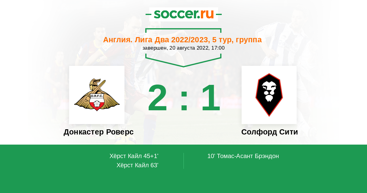 Протокол матча Донкастер Роверс против Солфорд Сити