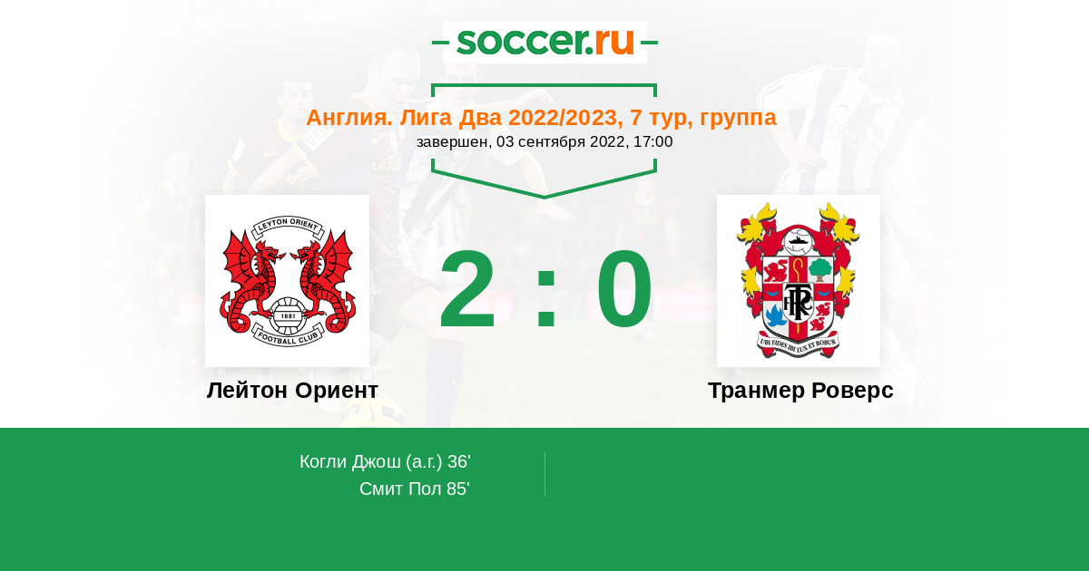 Протокол матча Лейтон Ориент против Транмер Роверс