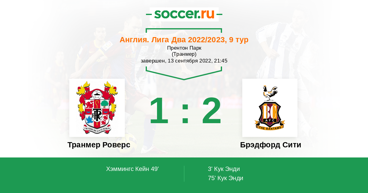Протокол матча Транмер Роверс против Брэдфорд Сити