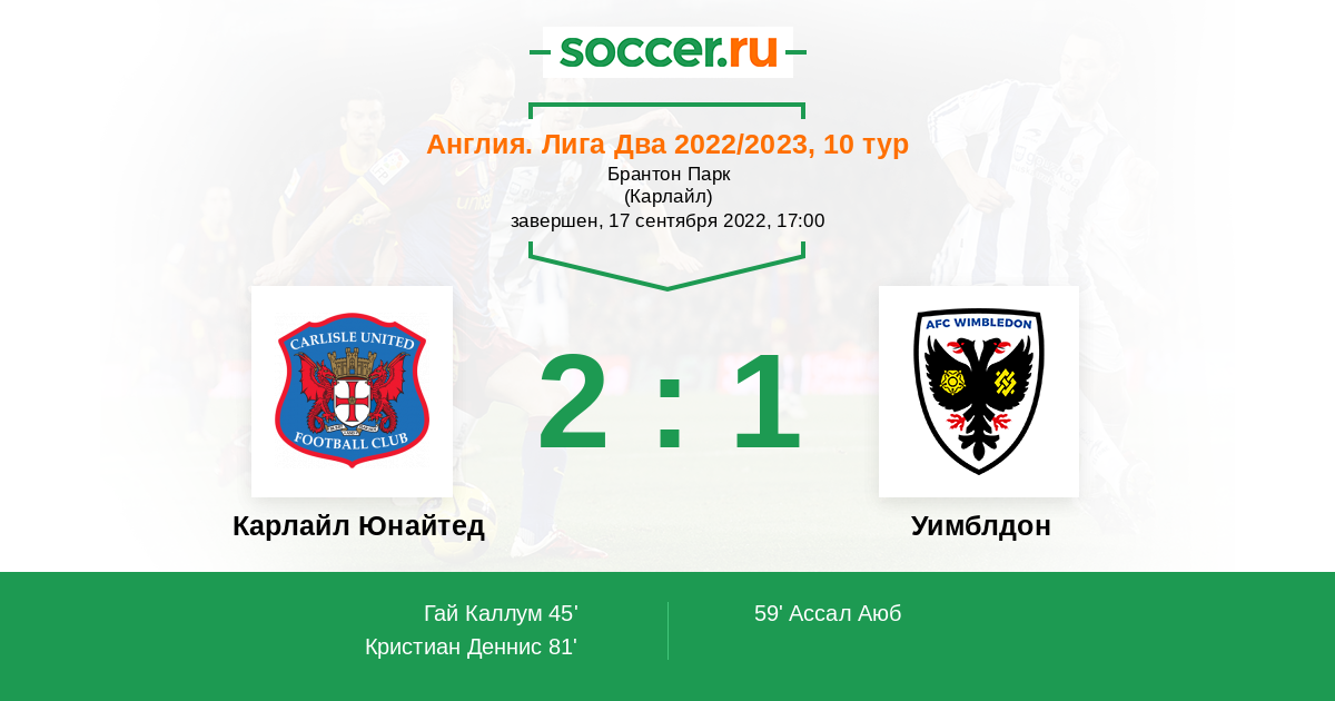 Протокол матча Карлайл Юнайтед против Уимблдон